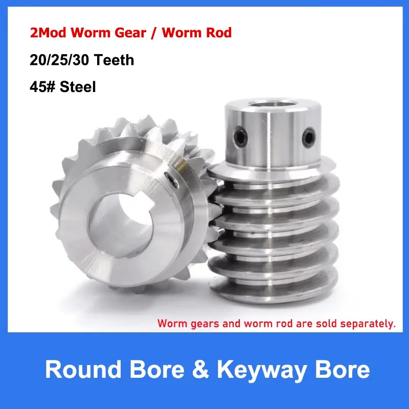 1 Stück 2 m Schneckengetriebe / Schneckenstange 45 # Schneckengetriebe aus Stahl mit 2 Modulen, 20/25/30 Zähnen, runder Bohrung und Keilnutbohrung