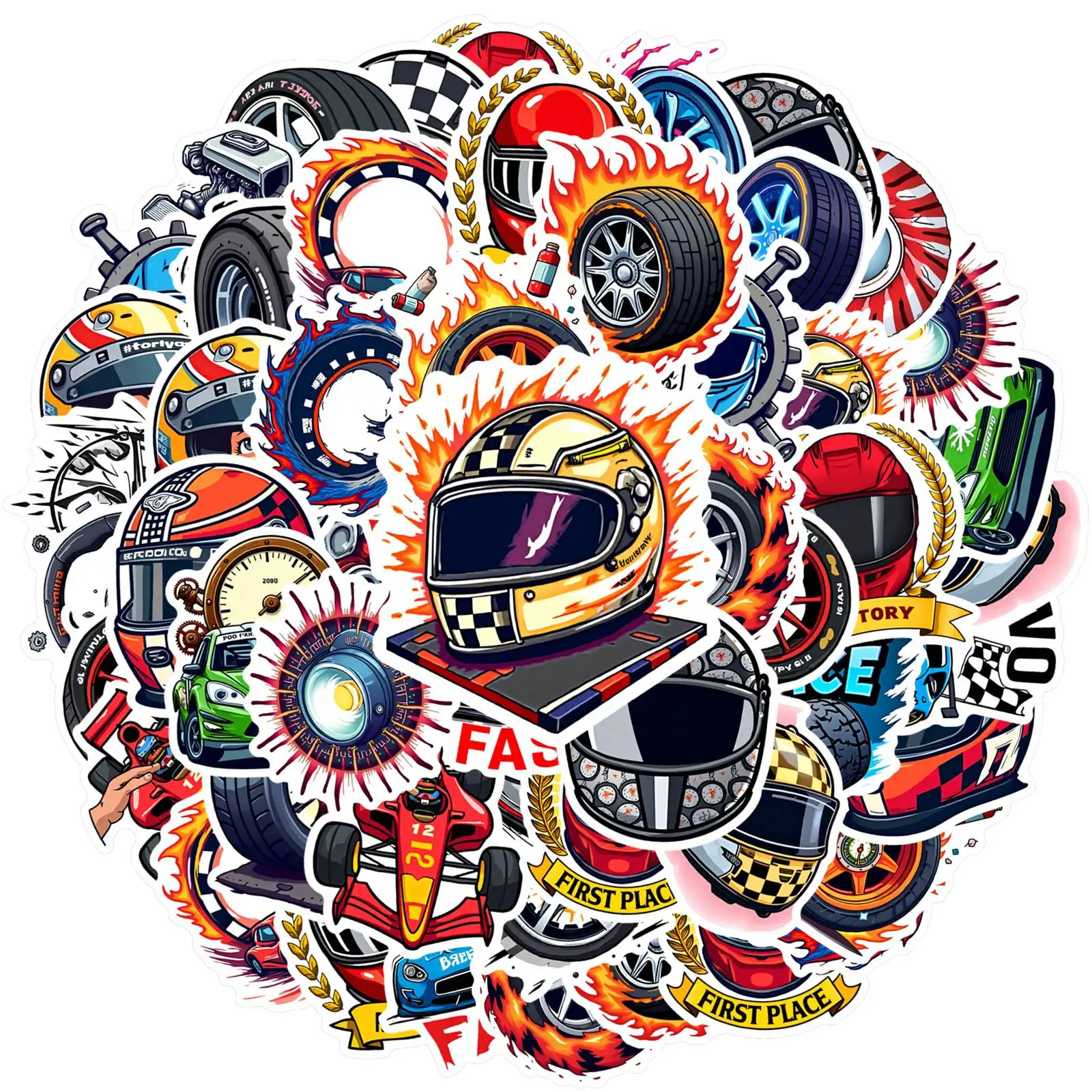 35 Stück-50 Stück Energetic Cars Aufkleber Sportliche Räder Autoaufkleber Racing Aufkleber für Gitarre DIY Skateboard Laptop Gepäck Dekor