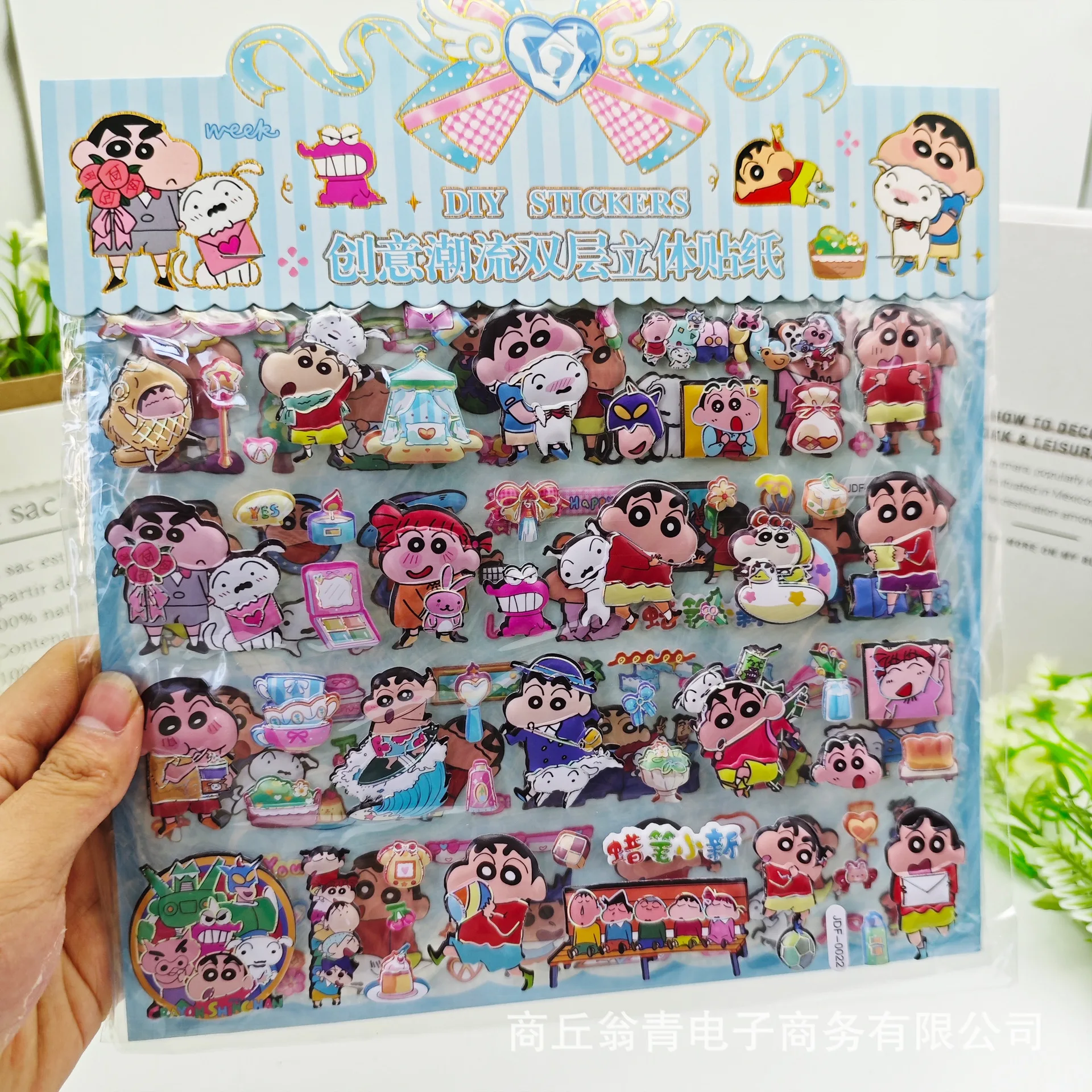 Süße Crayon Shin-chan Cartoon doppellagige 3D Kuromi Melody Aufkleber DIY Dekoration Laptop Telefon Kühlschrank große Blasenaufkleber