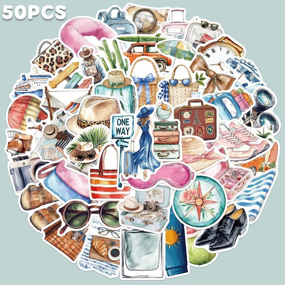 50 stücke Reise Aufkleber Cartoon Mode Aufkleber Für Telefon Kühlschrank Laptop Brieftasche Rucksack Fahrrad Helm Magazin Dekoration Aufkleber