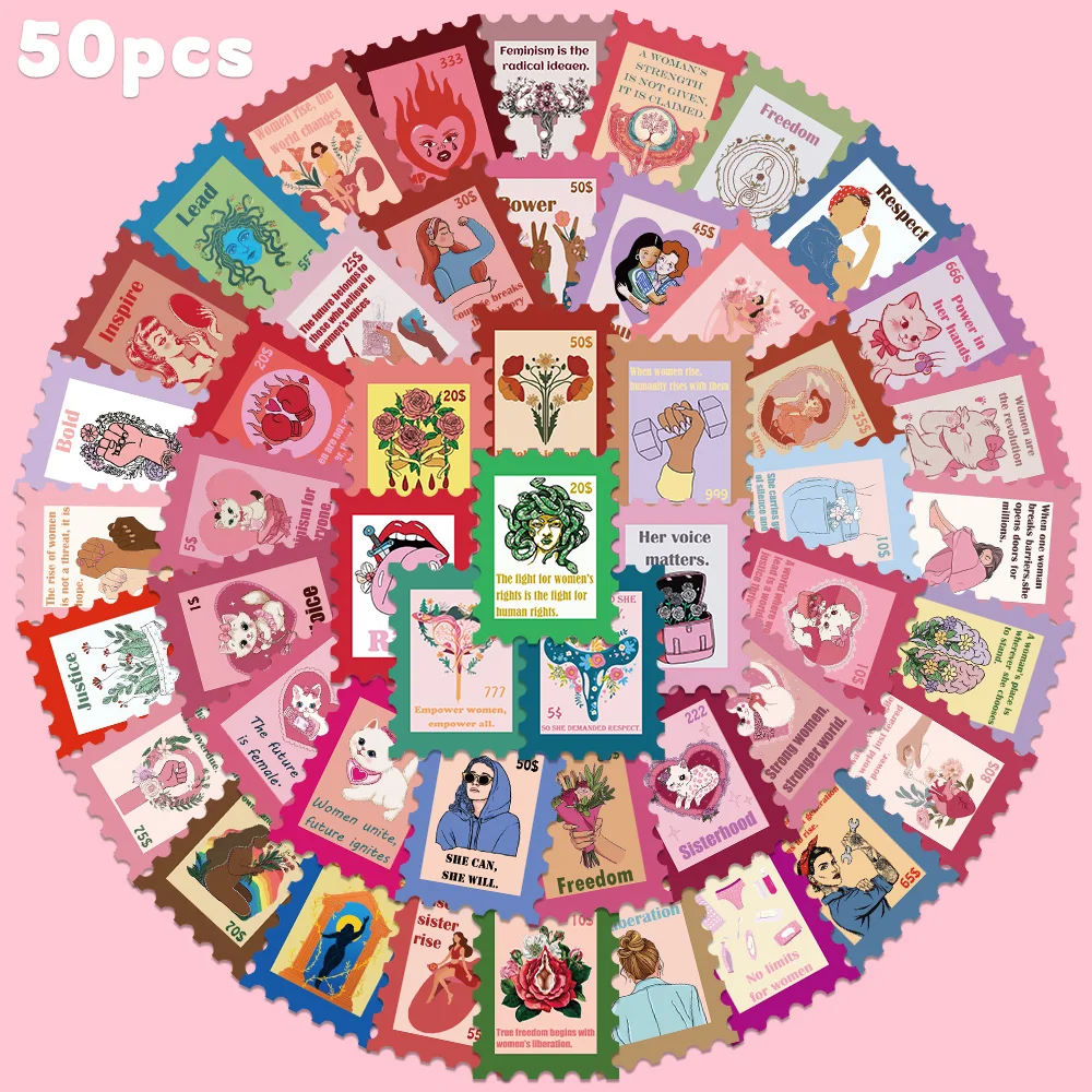 50 Stück feministische Stempelaufkleber, bunter kreativer Aufkleber für Laptop, Telefon, Gepäck, Sammelalbum, Zeitschrift, DIY-Aufkleber