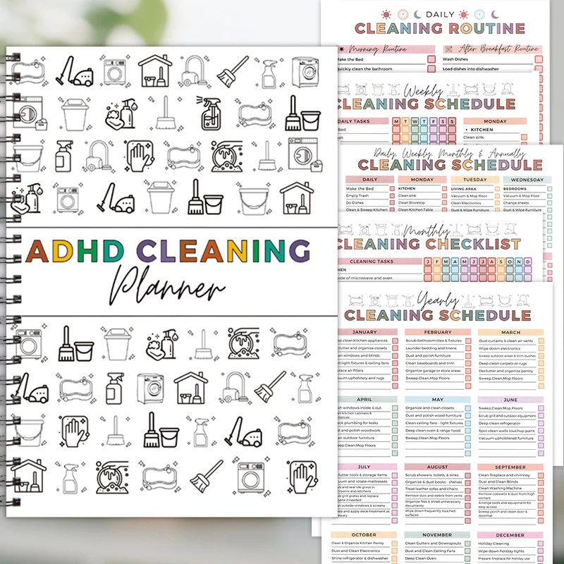 1 Adhd-Reinigungsplaner, Spiralgebundenes Notizbuch zur Haushaltsorganisation, Täglicher, Wöchentlicher und Monatlicher Reinigungsplan-Tracker, Haushaltsaufgabenliste, Illustrierter Reinigungsführer (für Erwachsene und Jugendliche)