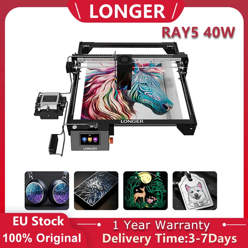 LONGER RAY5 40W Lasergraviergerät 0,10×0,15mm Präzisions-Laserpunkt 3,5-Zoll-Touchscreen 32-Bit-Chipsatz Offline-Gravur WLAN-Unterstützung