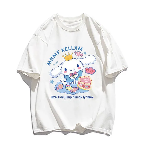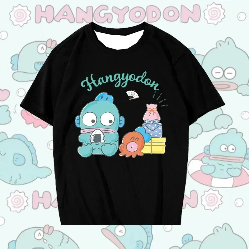 Sanrio Ugly Fish Hanton Bedrucktes Kurzarm-T-Shirt für den Sommer, lässiges, lockeres Oberteil, Damen-Cartoon-Kleidung, bequemes T-Shirt