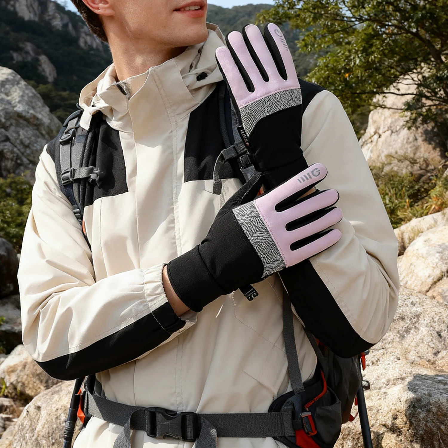 Winter Warme Wildleder Handschuhe Plus Samt Verdickte Plüsch Dekor Manschette Handschuhe Outdoor Coldproof Touchscreen Bergsteigen Handschuhe