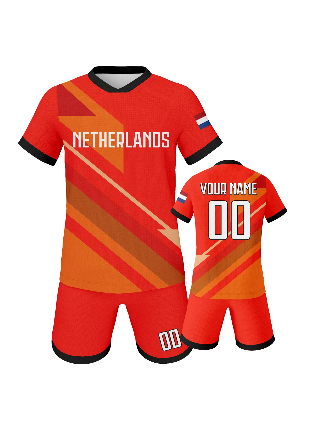 Personalisiertes Kinder-Fußballtrikot der Niederlande mit Namen & Nummer, Atmungsaktives Nationalmannschafts-Trainingsoutfit