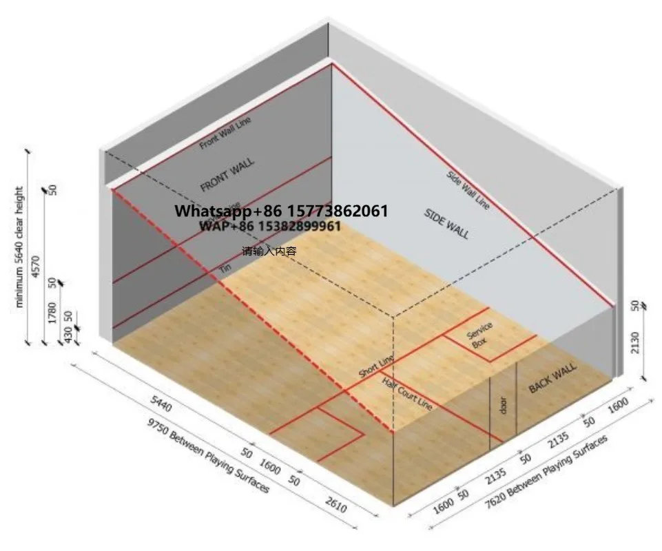 Hochwertiger, beliebter Sportplatz für Hardball-Squash, vollständig abgedeckter Außen- oder Innenplatz, Doppel-Squashplatz, Squash-Sportanlage