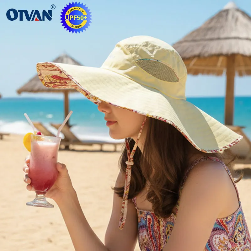 OTVAN Outdoor-Sonnenhut mit breiter Krempe, modischer Damen-Sonnenhut für den Strand, UV50+, zum Wandern, Angeln, schnell trocknend, atmungsaktiv, formbar, faltbar