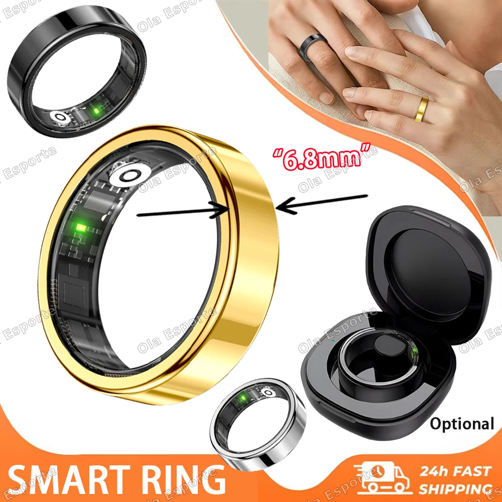 Neue Smart Ring Männer Frauen mit Lade Fall Herzfrequenz Blut Sauerstoff Überwachung 5ATM Wasserdichte Sport Smartring Für Android IOS