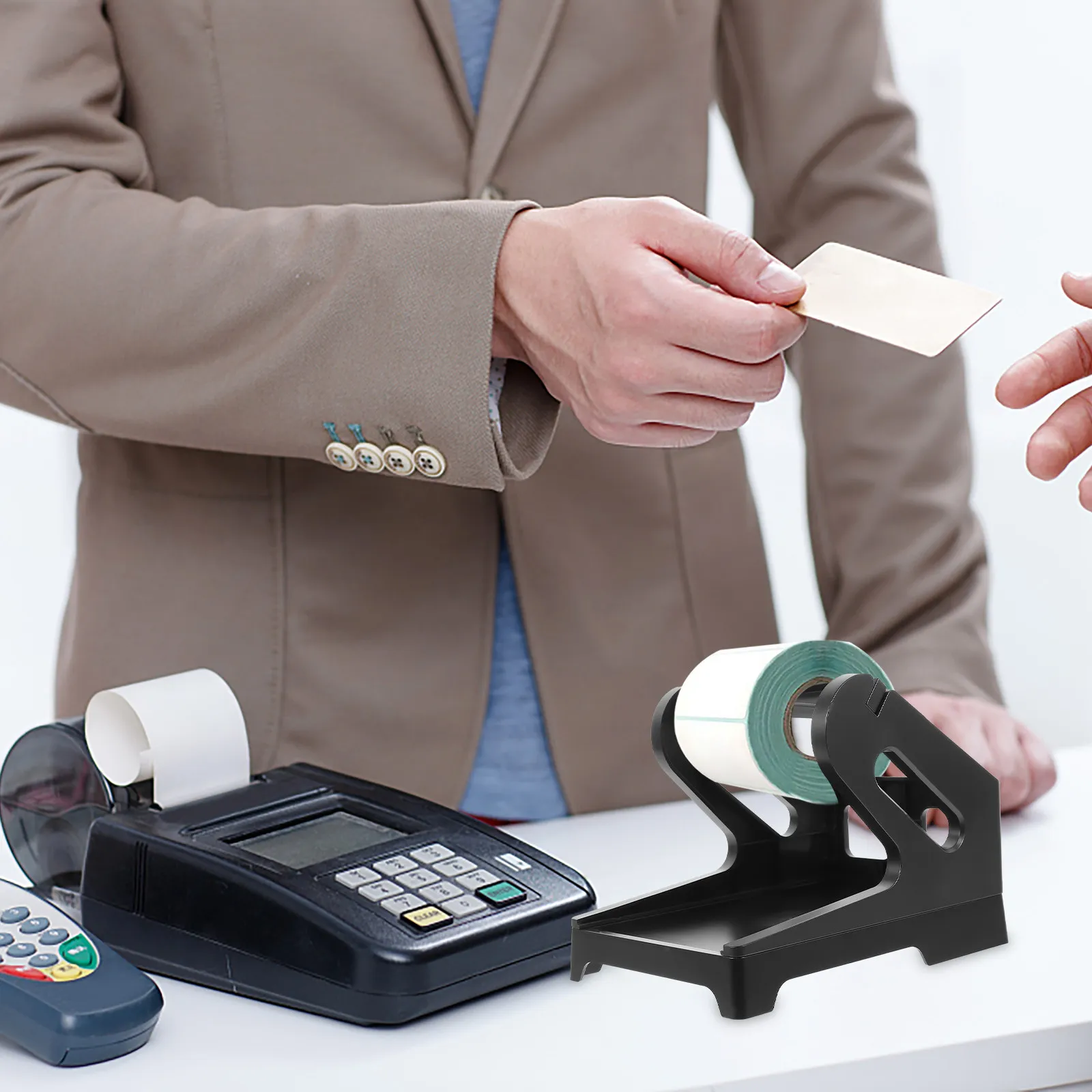 1 Stück Dual-Use-Etikettenhalter, externe Rollen-Faltbox für Desktop-Thermoetikettendrucker, Zubehörhalterung