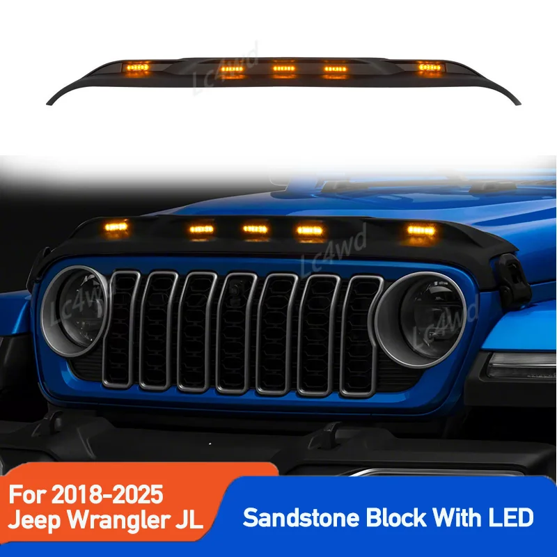LC4WD Außenzubehör Sandstein Deflektor Haubenschutz Steinschutz mit bernsteinfarbenen LED-Leuchten für Jeep Wrangler JL 2018–2025