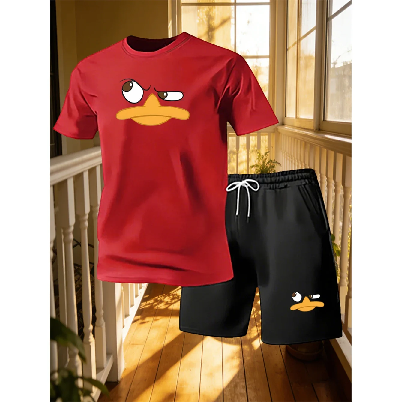 Sommer Herren Freizeit-Set mit Kurzarm-T-Shirt und Shorts, Geeignet für Urlaub, Freizeit, Outdoor-Jogging, Fitness