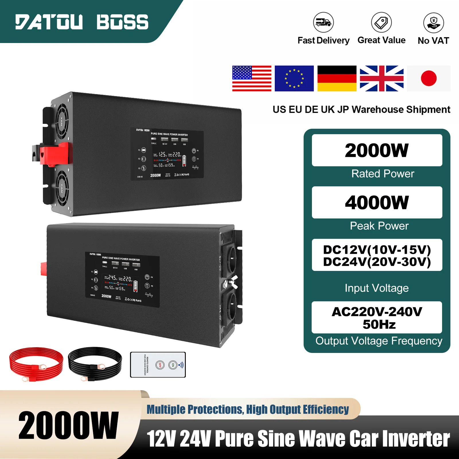 DATOU BOSS reiner Sinus-Wechselrichter, 12 V, 24 V, 1200 W, 2300 W, zwei Spannungen, unterstützt DC-Wechselstrom-Wechselrichter, 12 V auf 220 V, EU-Spitzenleistung 4000 W