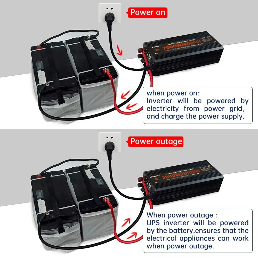 USV-Wechselrichter 2000 W/4000 W reiner Sinus-Wechselrichter DC12 V 24 V zu AC110 V 220 V unterbrechungsfreie Stromversorgung 15 A/8 A Ladestrom