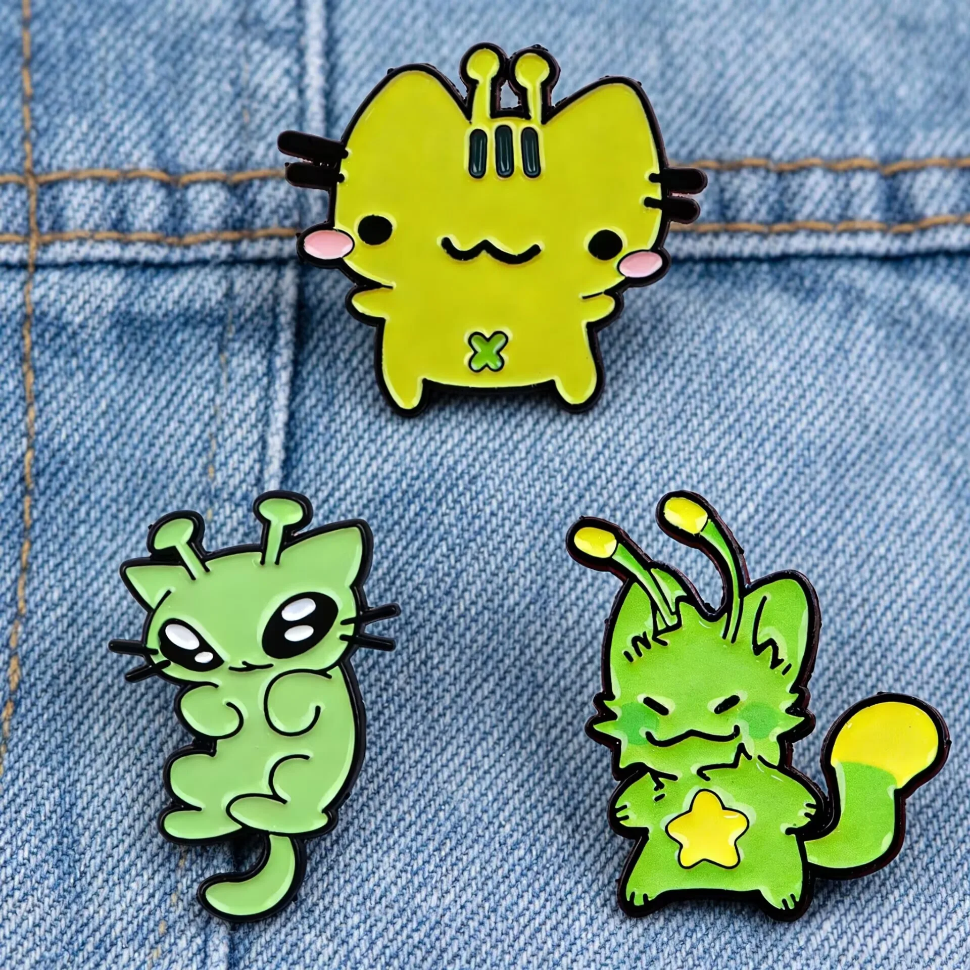 3er-Set niedliche Alien-Katzen-Emaille-Pins, Cartoon-Tierbroschen für Mäntel, Damenbroschen, Rucksack-Reversabzeichen, Geschenke für Freunde