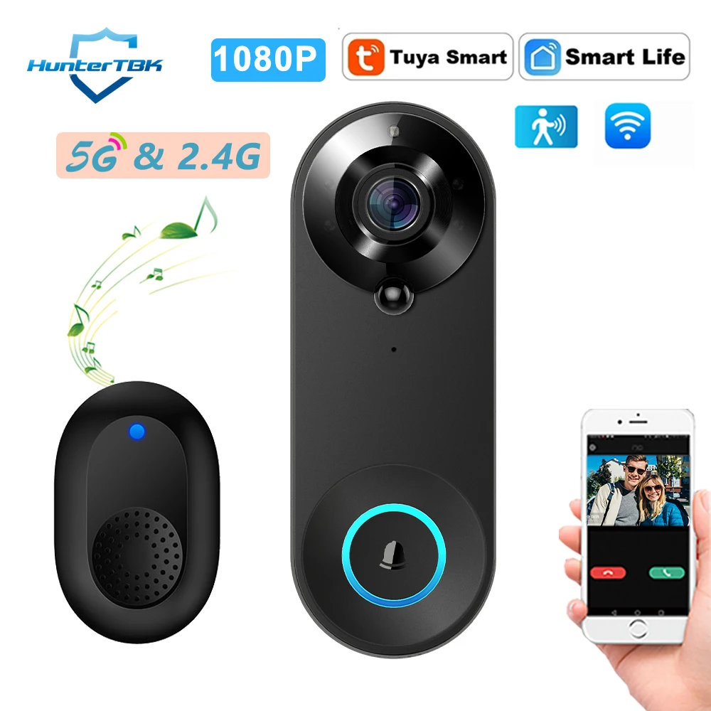 5G 2.4G WLAN Video-Türklingel 1080P Kabellose Kamera-Türklingel Tuya Smart Home Sicherheit Bewegungserkennung Nachtsicht Klingelton