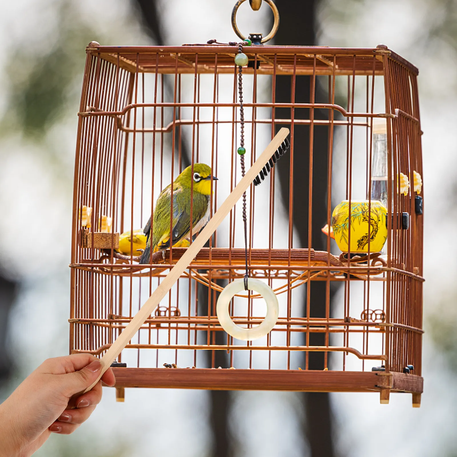 Lange Vogelkäfig-Reinigungsbürste aus Bambusmaterial mit Anti-Haarausfall-Design für schwer erreichbare Stellen im Käfig
