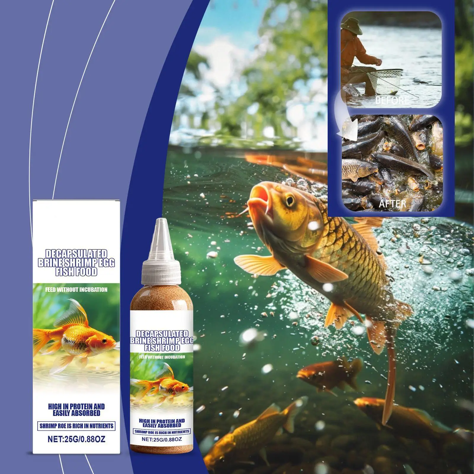 Fischfutter, entkapselte Sole, Garnelen, Eier, See, Angelzubehör, Outdoor-Fischlockstoff für Züchter, Bastler, Angler