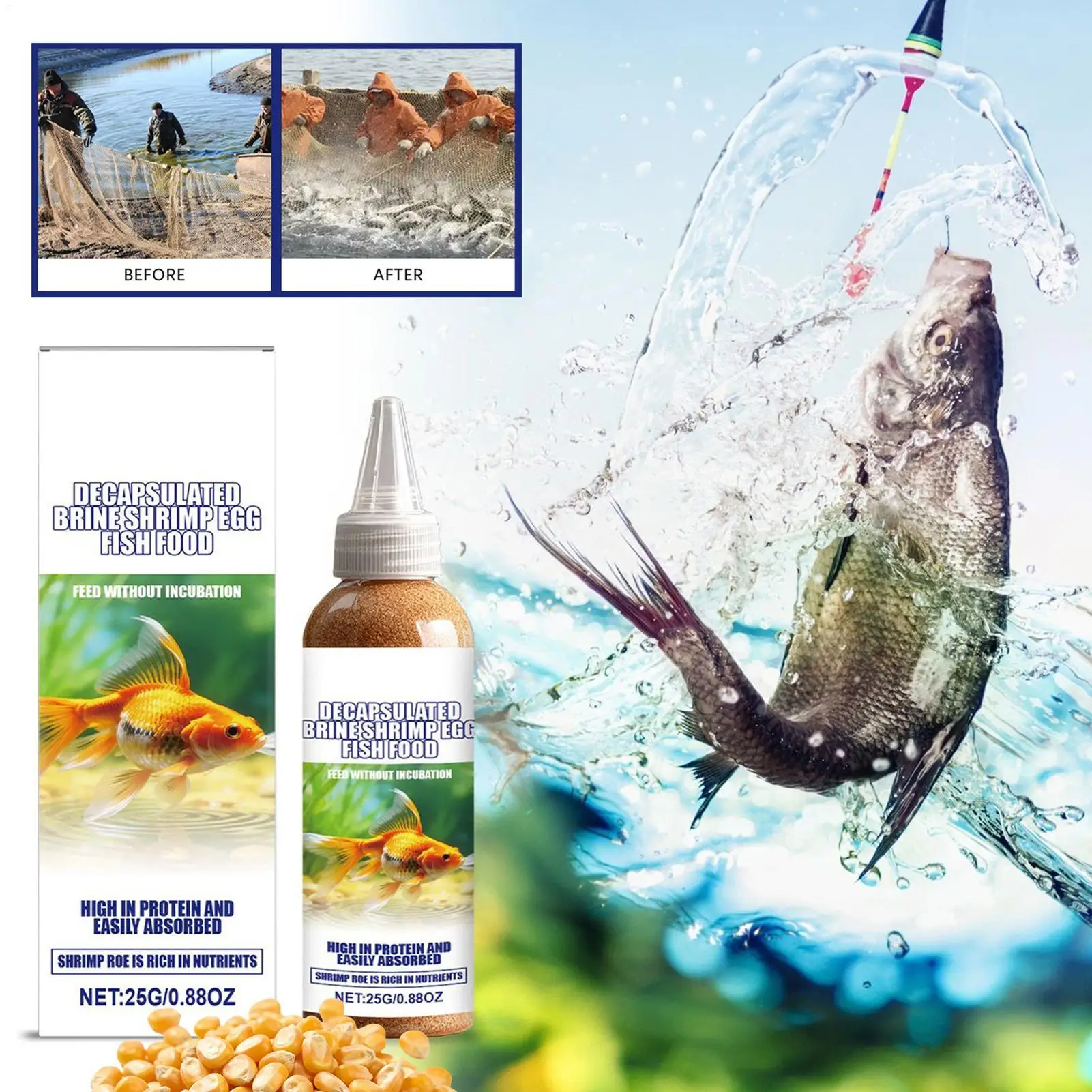 Süßwasser-Fischfutter, entkapselte Salzlake, Garnelen, Eier, See, Angelzubehör, Outdoor-Fischlockstoff für Züchter, Bastler