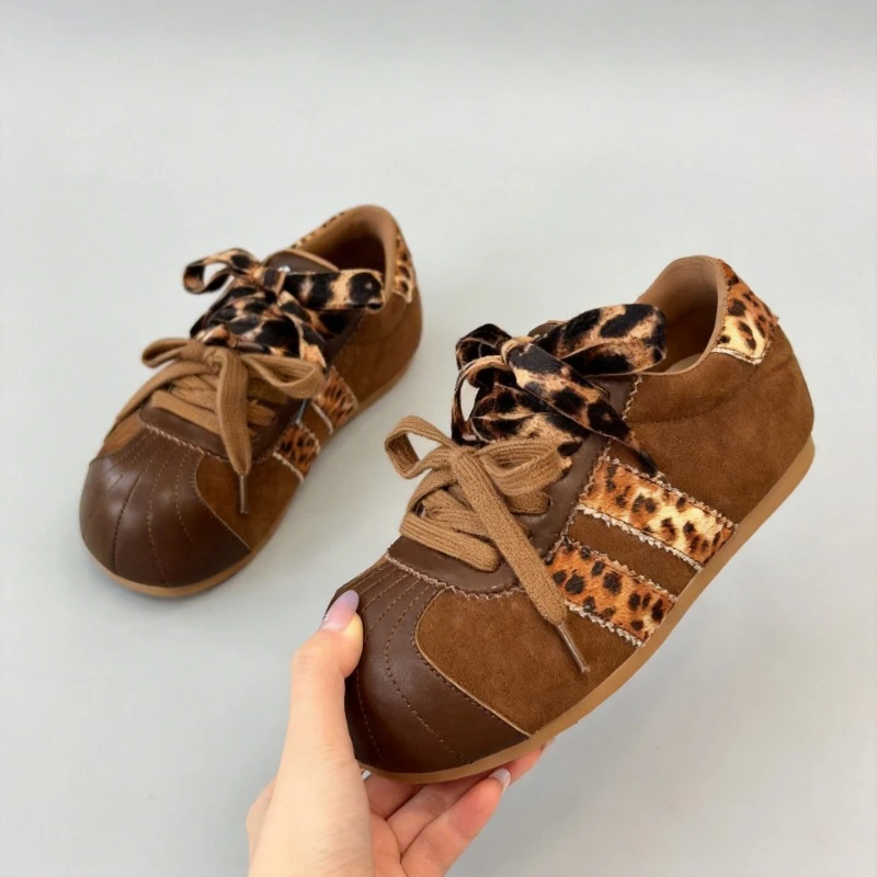Retro-Sneaker mit Leopardenmuster für Mädchen – Lässige Schnürschuhe für Kinder, modische Schuhe für den Alltag, bequeme Kindersneaker für Mädchen und Jungen