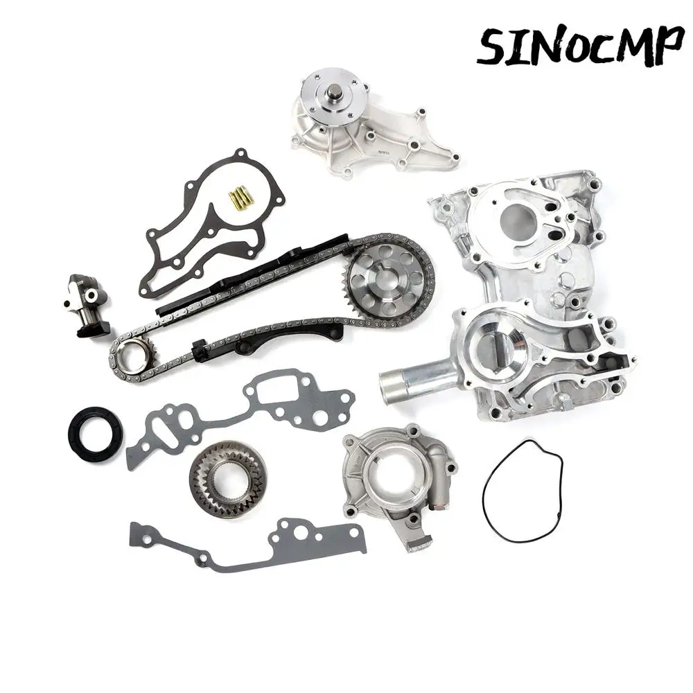 1 Satz Steuerketten-Kit-Abdeckung mit Stahlschiene, Öl- und Wasserpumpe, passend für Toyota 2.4 22RE PICKUP Steuerketten-Set, Automobilteile
