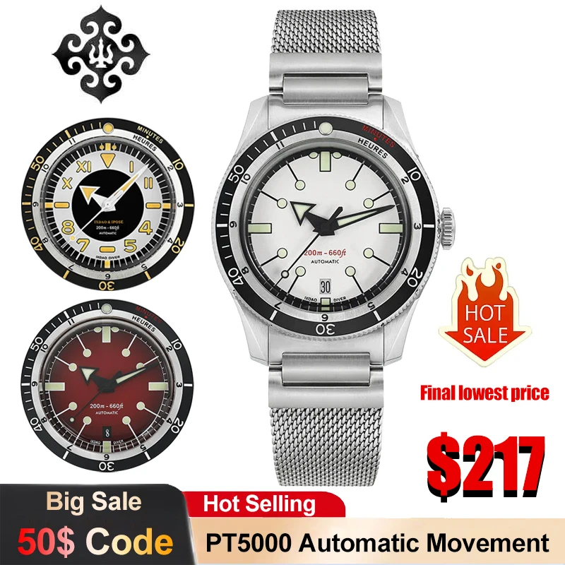 IX&DAO IPOSE 5303 Mechanische Herrenuhr PT5000/SW200 GMT Automatikwerk Luxusuhr Saphir 200 m wasserdichte Taucheruhr