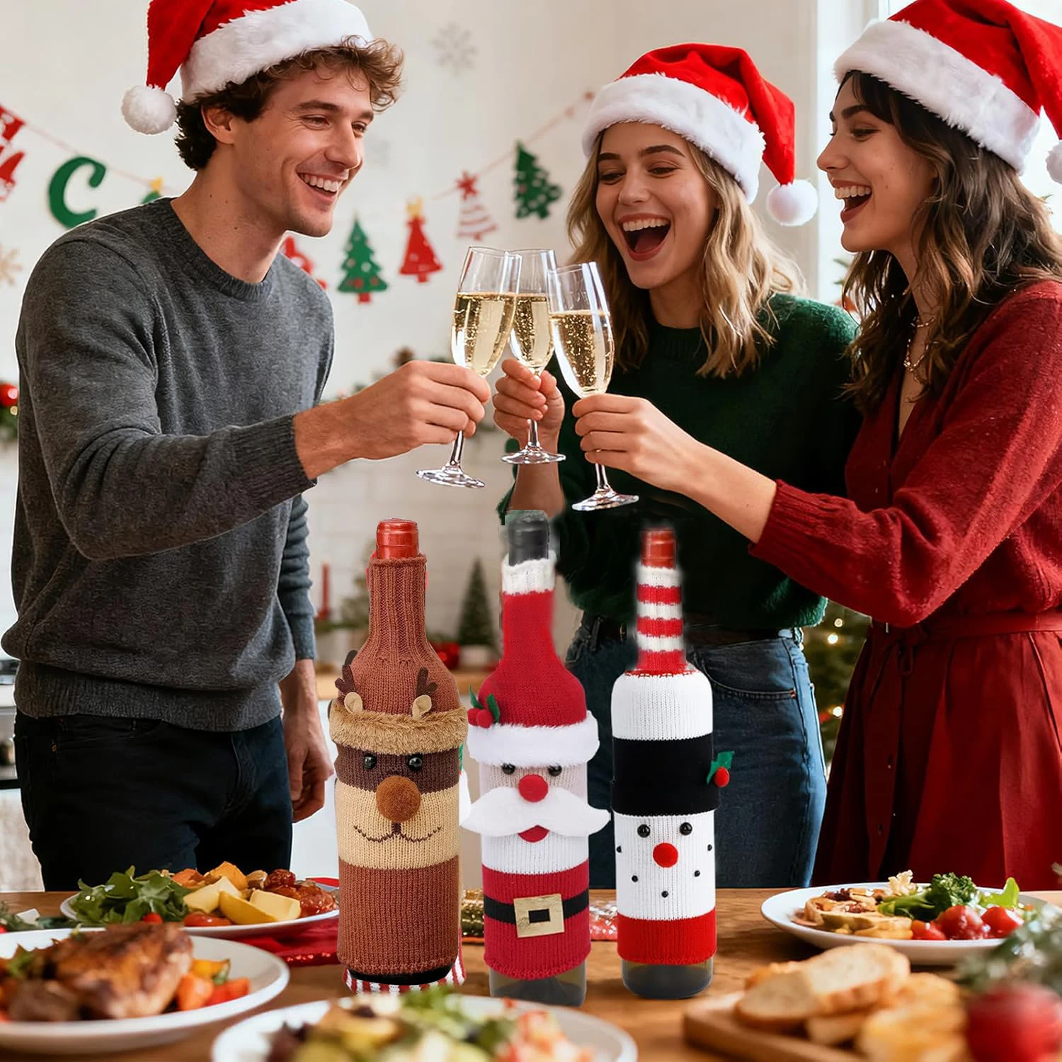 2 Stück süße Weihnachtspullover Weinflaschenhülle, handgefertigte Weinflaschenhülle Weihnachten süße Weihnachtsfeierdekorationen