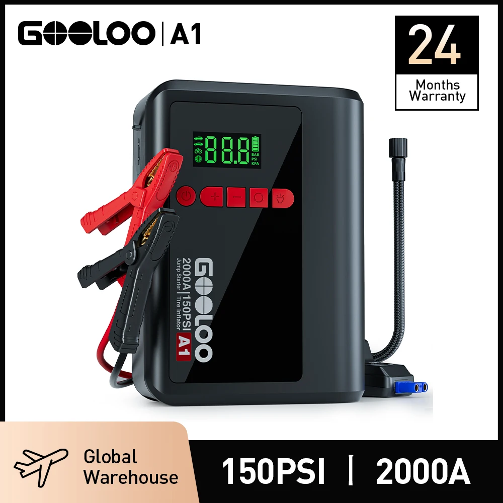 GOOLOO A1 Starthilfe mit Luftkompressor, 2000 A tragbarer AutobatterieGOy Booster (7,0 Gas/5,5 l Diesel) mit 150 PSI Luftkompressor