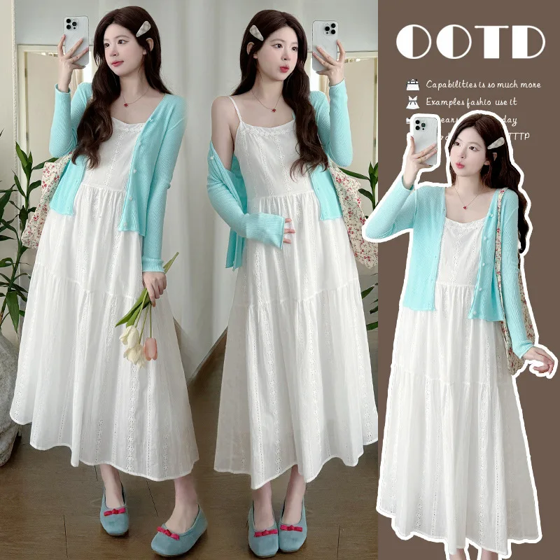 Umstandsset für den Sommer, locker, atmungsaktiv, elegant, temperamentvoll, besticktes Kurzarm-Oberteil und gerade Hose mit weitem Bein für die Schwangerschaft