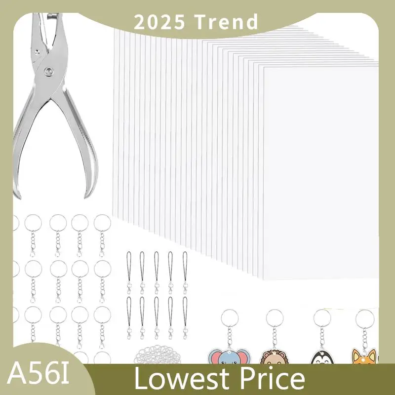 Spezielles Schrumpfpapier-Schlüsselanhänger-Set – 161-teilig mit 30 schrumpfenen Kunststoffbögen (7,9 x 5,7 Zoll) Locher, Karabinerverschlüssen und Biegeringen