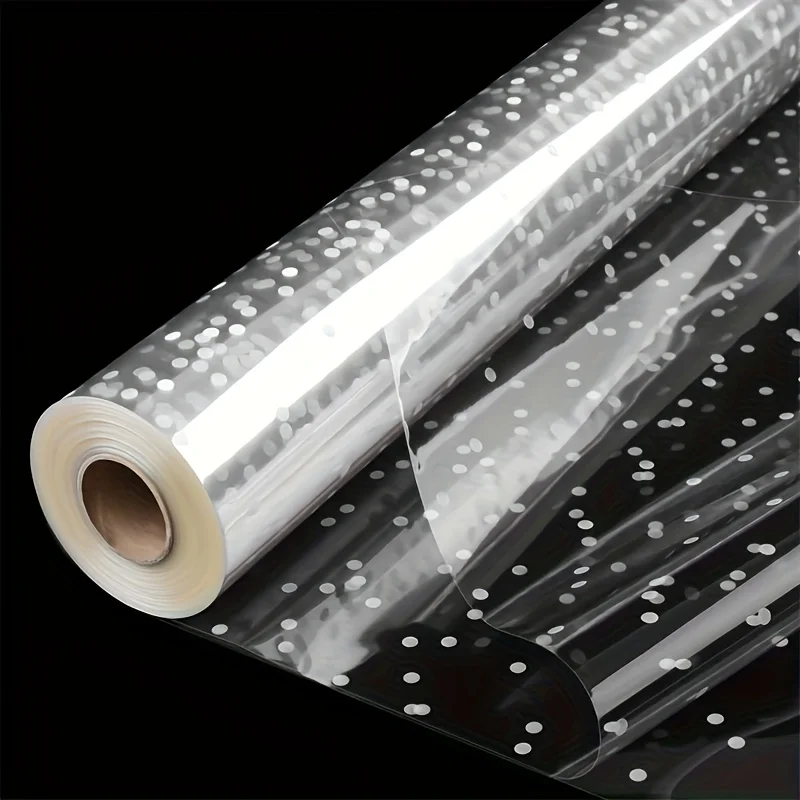 1 Stück extra breite, klare Zellophan-Wickelrolle mit unregelmäßigen weißen Punkten, klare, verdickte Zellophanrolle, Geschenkkorbverpackung