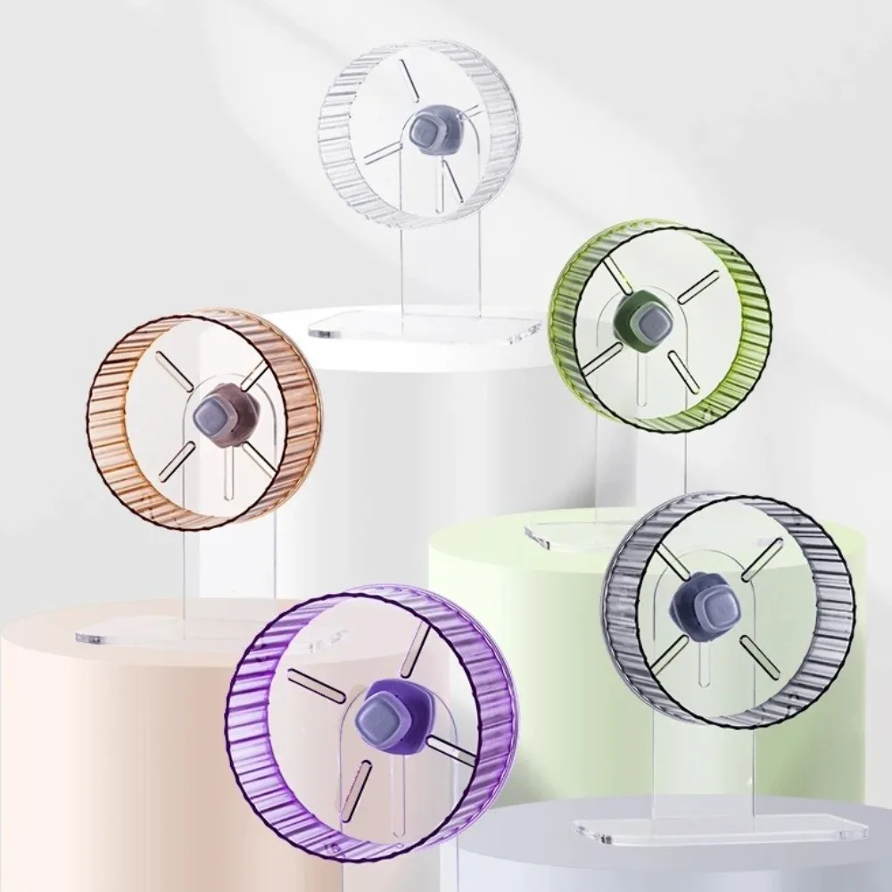 Transparentes Rad für Hamster, Übungskäfig, 17 cm, Laufrad für Haustiere mit Ständer, geräuschloses Übungsspielzeug für Hamster