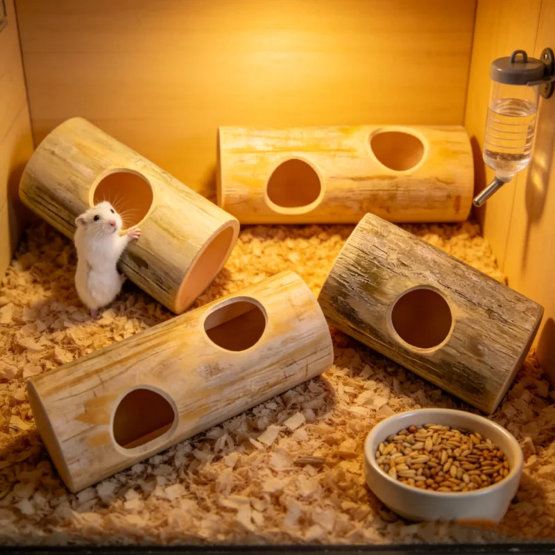 Holz-Hamsterbaum-Hohlspielzeug: Tannenstumpf-Versteck, Tunnel, Käfigdeko, Kau- und Schleifspielzeug für kleine Haustiere wie syrische Hamster