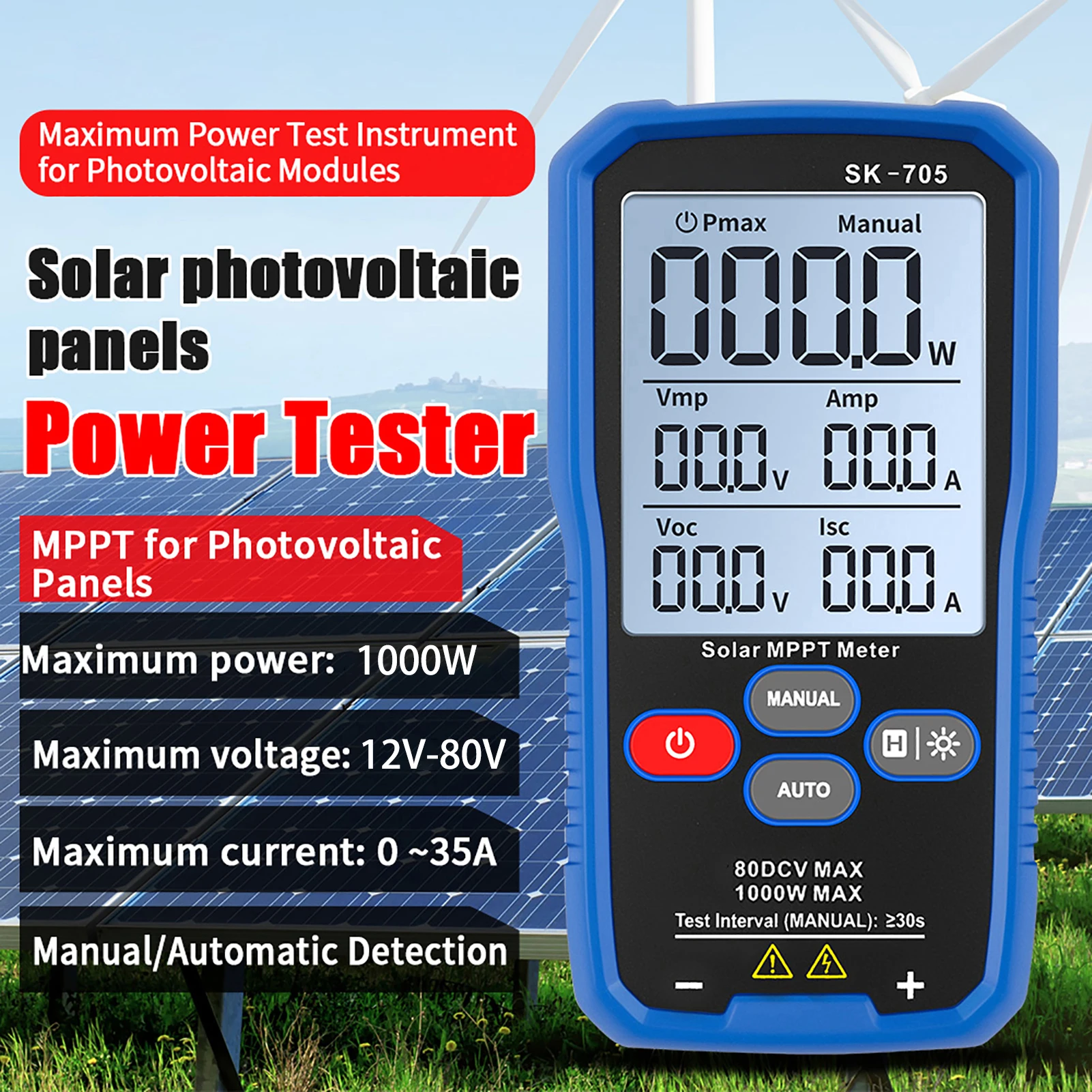 SK-705 Solar MPPT Messgerät Photovoltaik-Multimeter PV-Modul 1000W MAX Leistungstester Leerlaufspannung Kurzschlussstrom