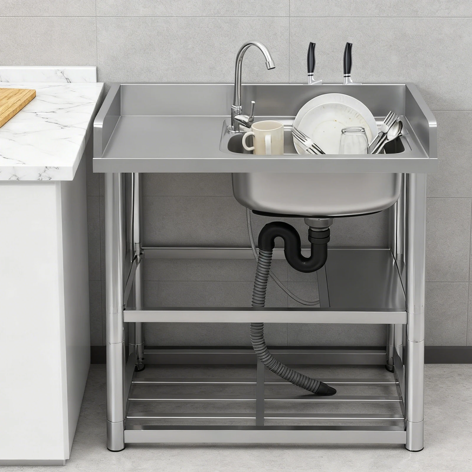 220,46 Pfund 31,5 * 19,7 Zoll Bodenstehend Edelstahl-Singlespülbecken 360 ° Handwaschstation für Restaurants, Bars, Waschräume