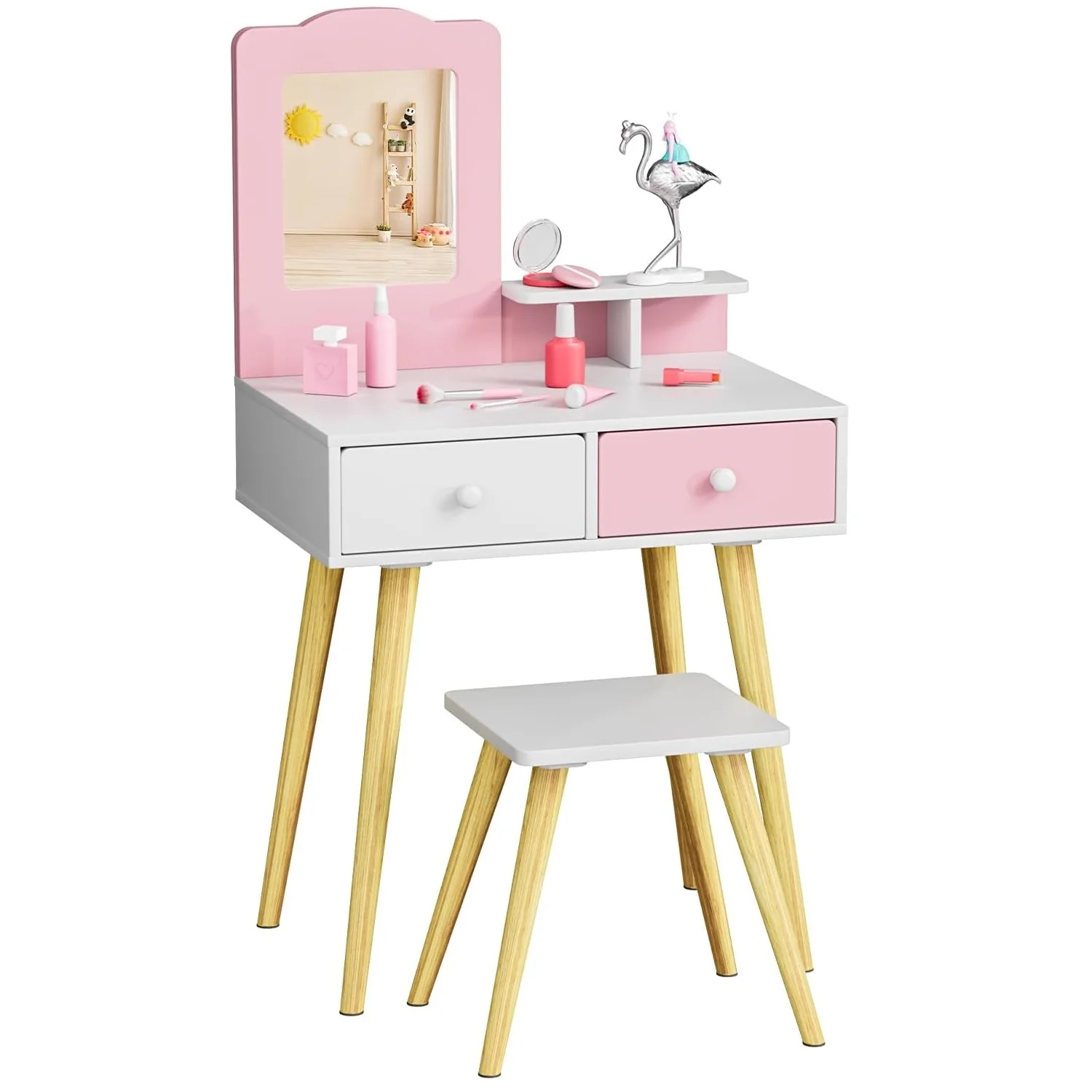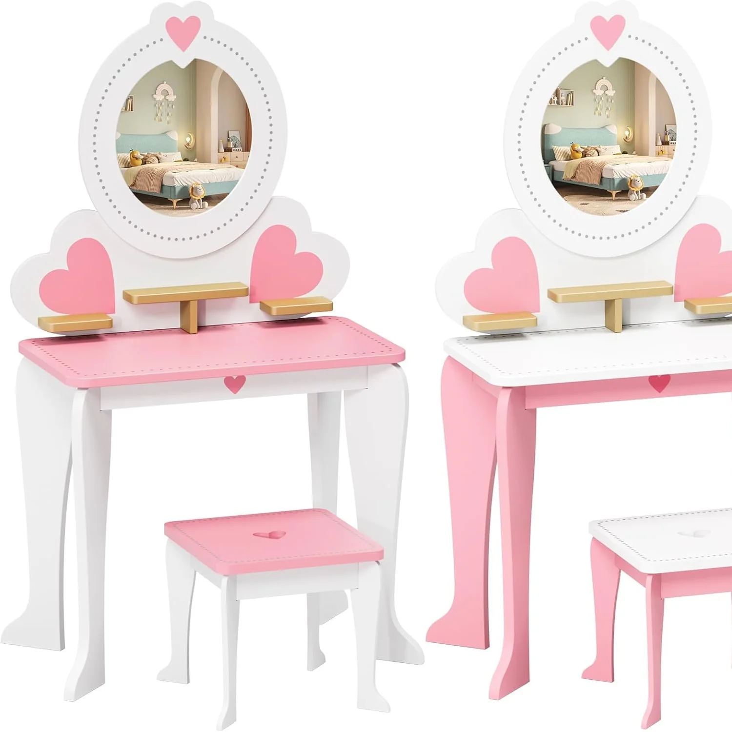 Kindermöbel, Kinder-Make-up-Tisch aus Holz, Kinder-Waschtisch-Set mit Hocker für Mädchen, Prinzessin, Rollenspiel