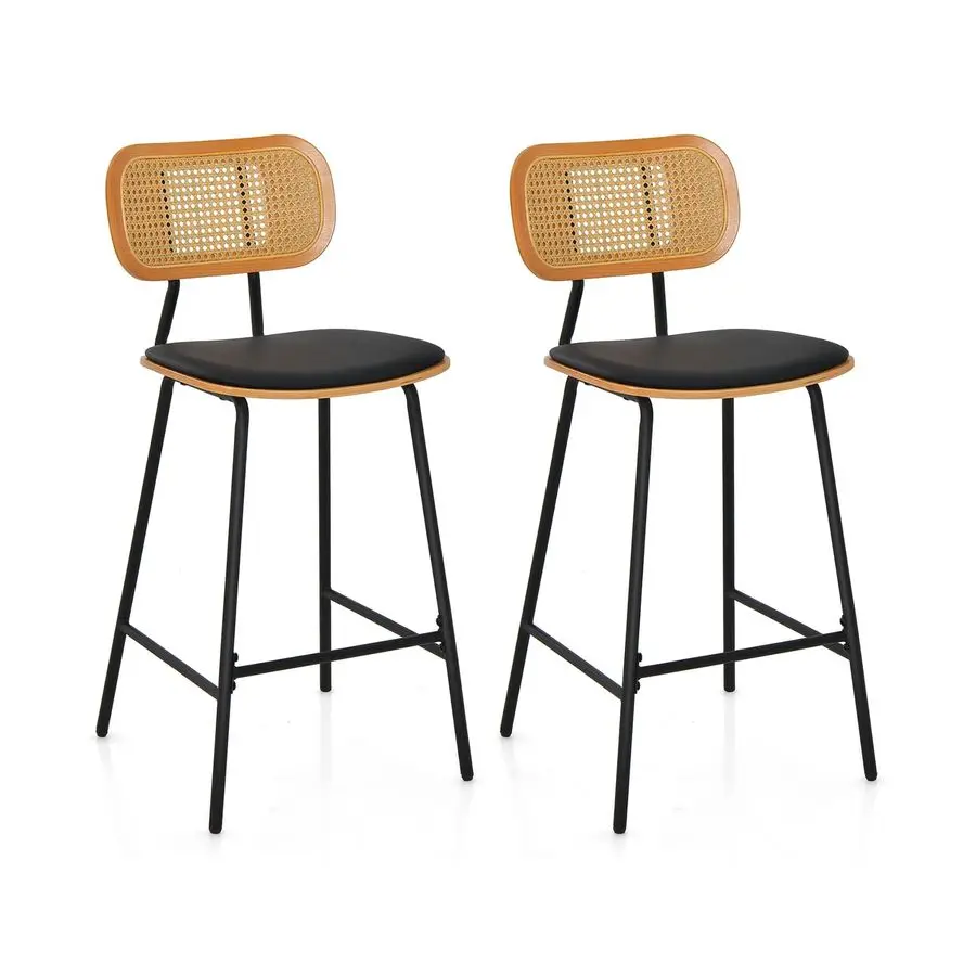 Barhocker-Set mit 2 Stück, Barhocker mit Rattan-Rückenlehne und gepolstertem Sitz, Barstuhl mit Fußstütze bis 140 kg Tragfähigkeit für Kitc