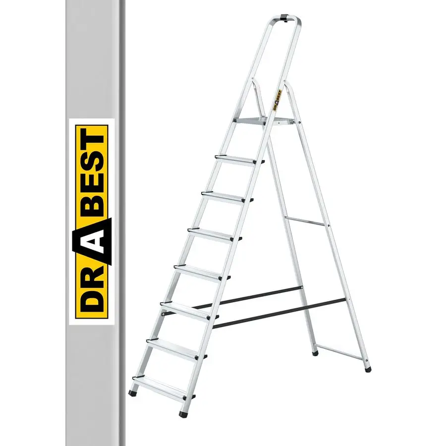 Stehtreppe, 8 Stufen, klappbare Trittleiter, Aluminiumleiter, Haushaltsleiter, maximale Belastung 125 kg, kostenloser Haken