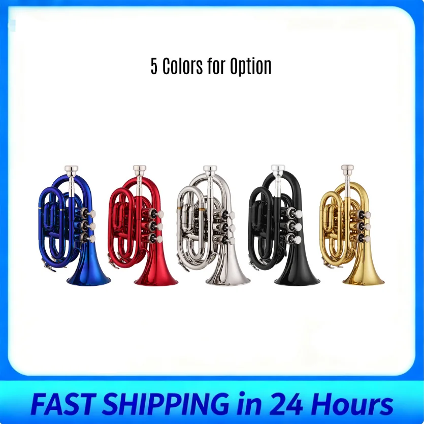 Mini Trompete Bb Flach Messing Blasinstrument mit Mundstück Handschuhe Reinigungstuch Tragetasche Messing Trompete Mini Trompete