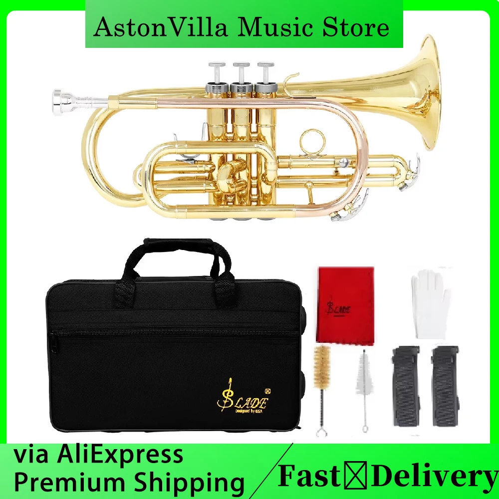SLADE B ♭ Kornett | Professionelles Gehäuse aus massivem Messing | Goldlack- und Phosphorkupfer-Leitungsrohr | Präzisionsbohrung mit Koffer + Pflegeset 🎺