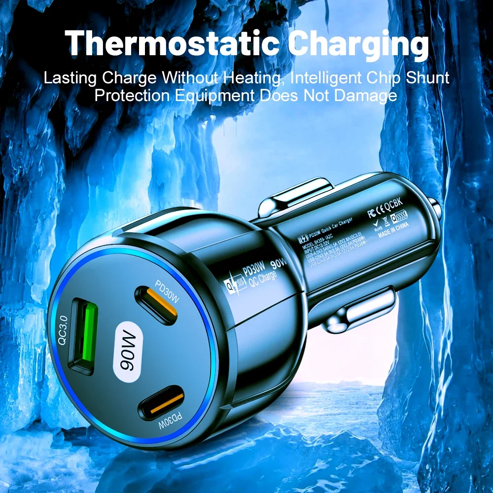 90W Schnellladegerät 3 Anschlüsse PD USB Auto-Ladegerät Handy Typ-C Adapter Schnellladegerät für Auto für iPhone 14 15 Pro/Max Samsung