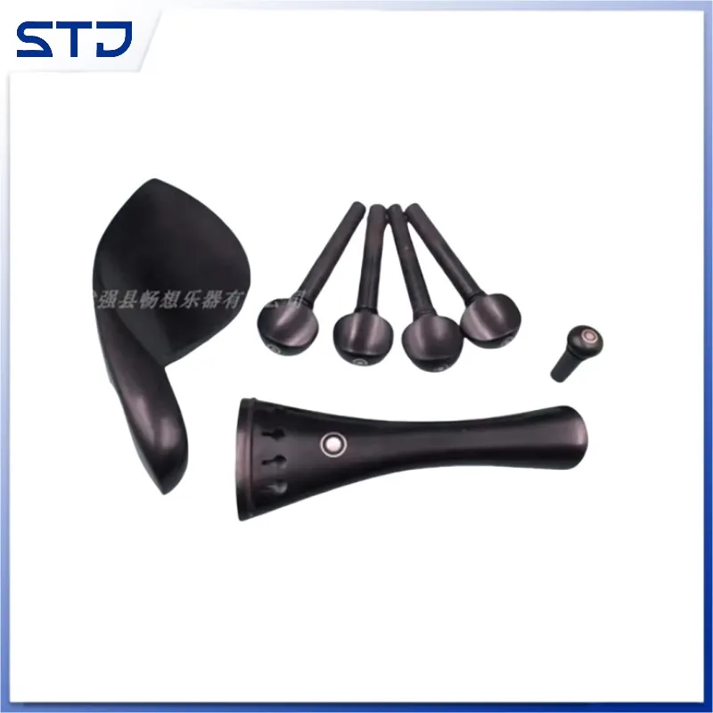 1 Satz Ultrahochauflösende Bratscheenteile aus Ebenholz – mit neuer Bratschen-Kinnhalter, Saitenhalter, Heringe und Ende