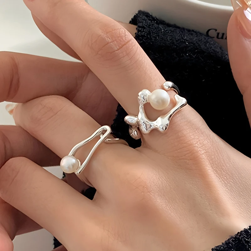925 Sterling Silber Perle Unregelmäßige Finger Ringe Für Frauen Luxus Schmuck Vintage Anillos Zubehör Geburtstag Geschenk Großhandel