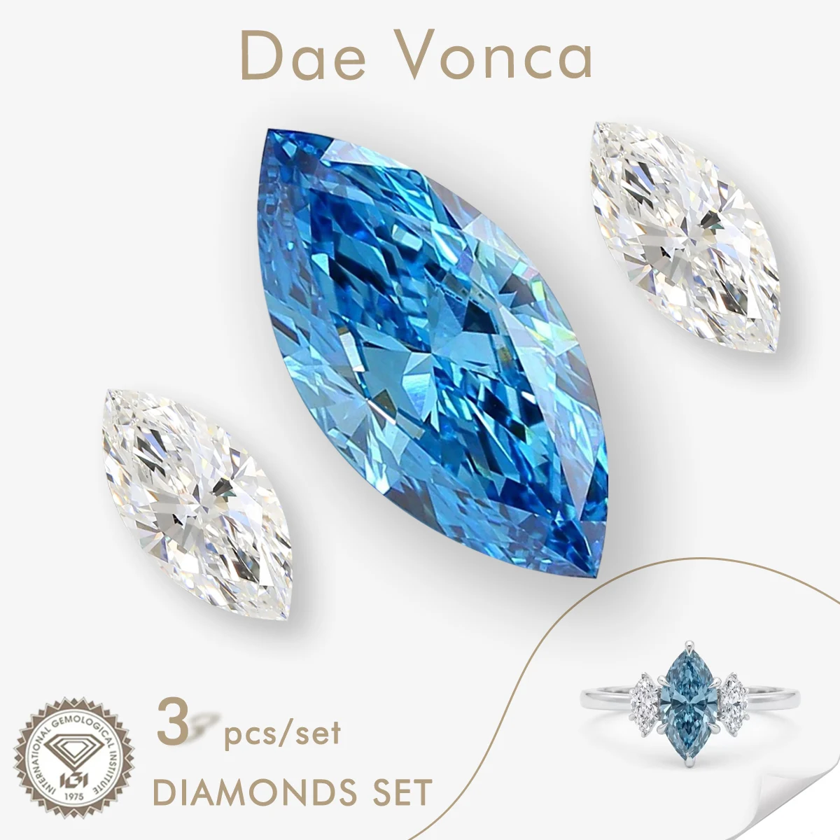 3 Stück blau gefärbte, im Labor gezüchtete Marquise-Diamanten, IGI CVD/HPHT, Marquise & Marquise weiße Diamanten, lose Diamanten-Set zur Herstellung von Ringen
