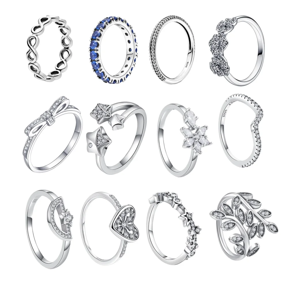 925 Sterling Silber Original Herz Schleife Stern Blätter Design Ring Damen Modeschmuck Stilvolles Accessoire Urlaub Hochzeitsgeschenk