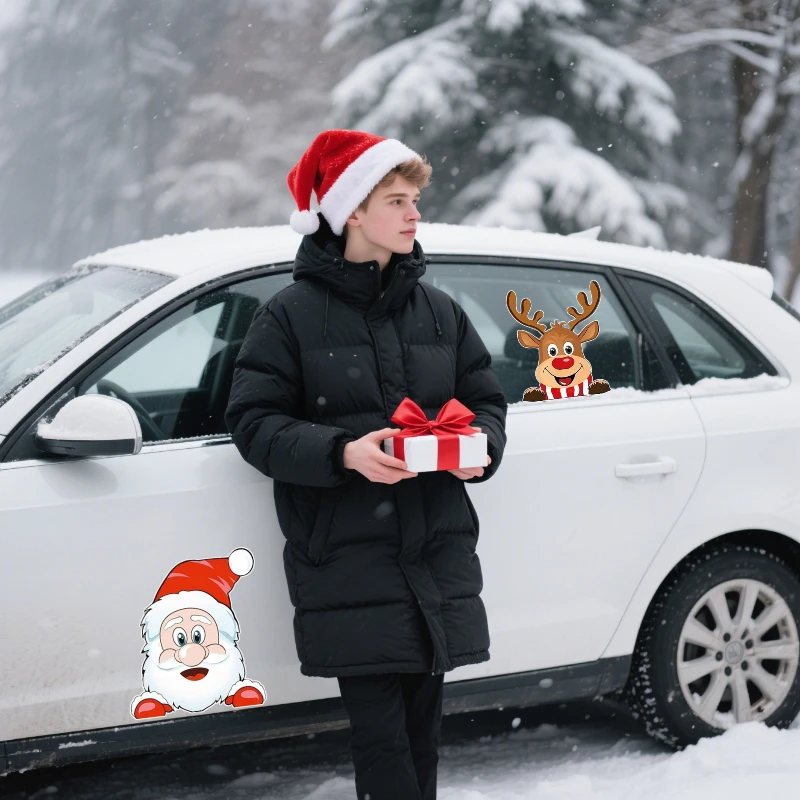 Autoaufkleber, Weihnachtsmann, Rentier-Aufkleber, wasserdicht, Dekor, Abdeckung, Kratzer, Autofenster, Weihnachtsstil, langlebige Vinyl-Aufkleber