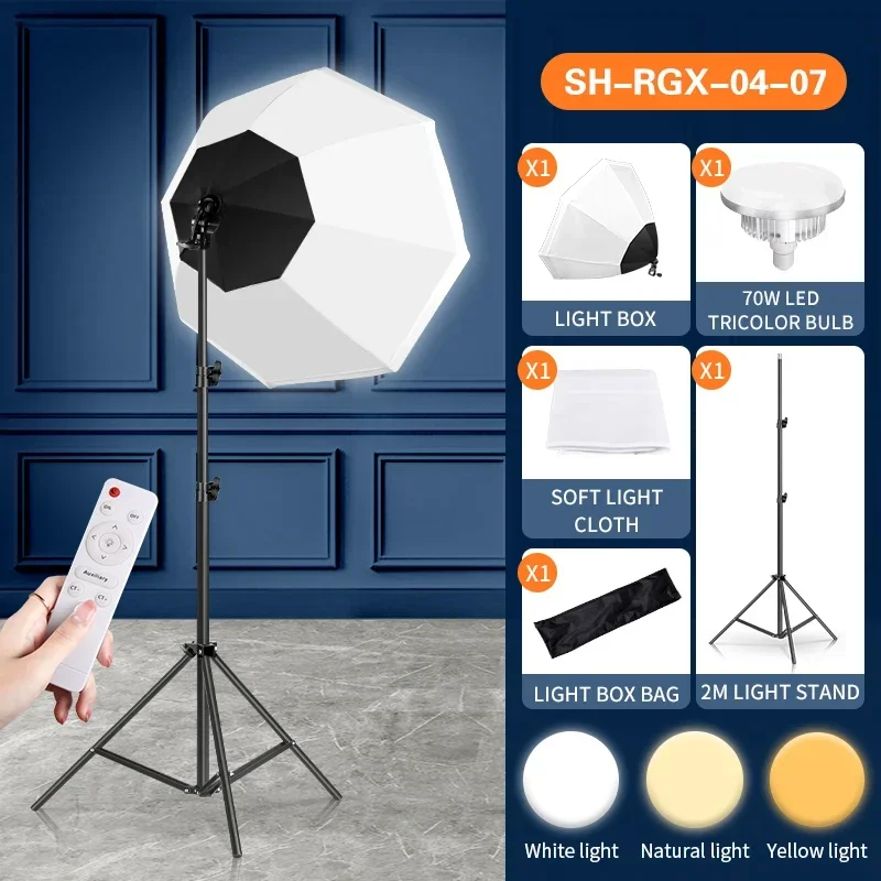 Fotografie Softbox Kit Tragbare Octagon Softbox 70W LED Licht Helligkeit Flash Regenschirm Mit 2M Ständer Foto Studio Zubehör