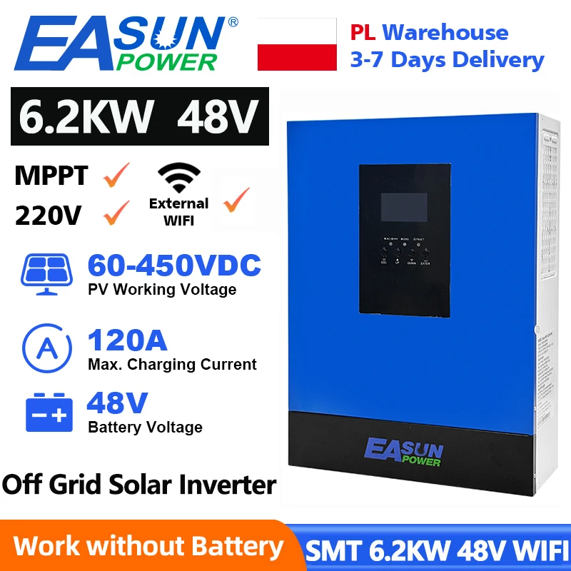 POWLAND MPPT-Solarwechselrichter 6000 W 60 V-450 V PV-Eingang max. 4500 W * 2 220 V 50 Hz reiner Sinuswellen-Wechselrichter mit CT-Funktion inklusive WIFI
