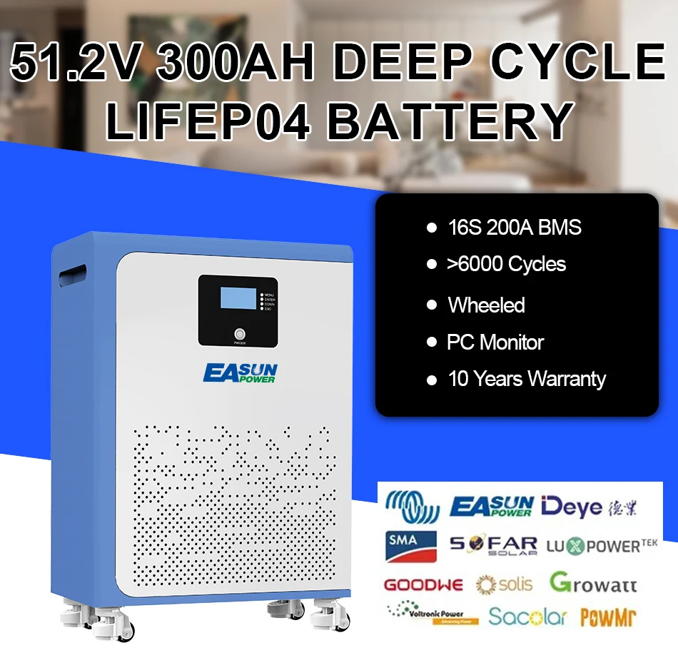 EASUN 300Ah/15kWh 200Ah/10kWh 100Ah/5kWh 48V 51,2V 16S Lifepo4 Lithium-Eisen-Akku parallel 6000+ Solar- und Heimenergie