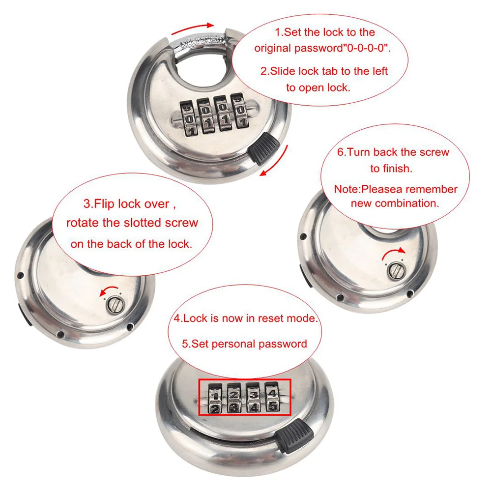 4-stelliges Zahlenkombinations-Scheiben-Vorhängeschloss, rostfreier Edelstahl, schlüssellose Sicherheit, rundes Passwort-Vorhängeschloss, wasserdichtes Tür-Sicherheits-Vorhängeschloss